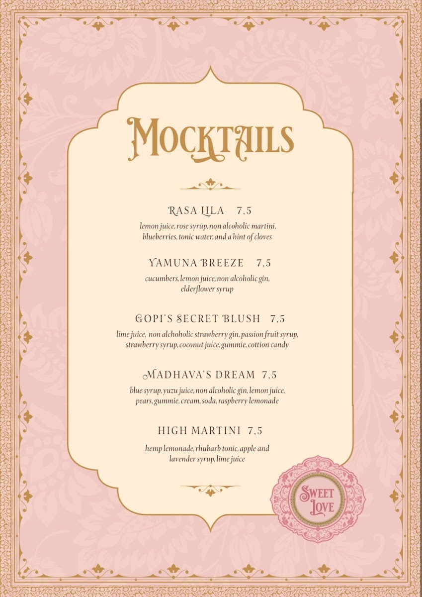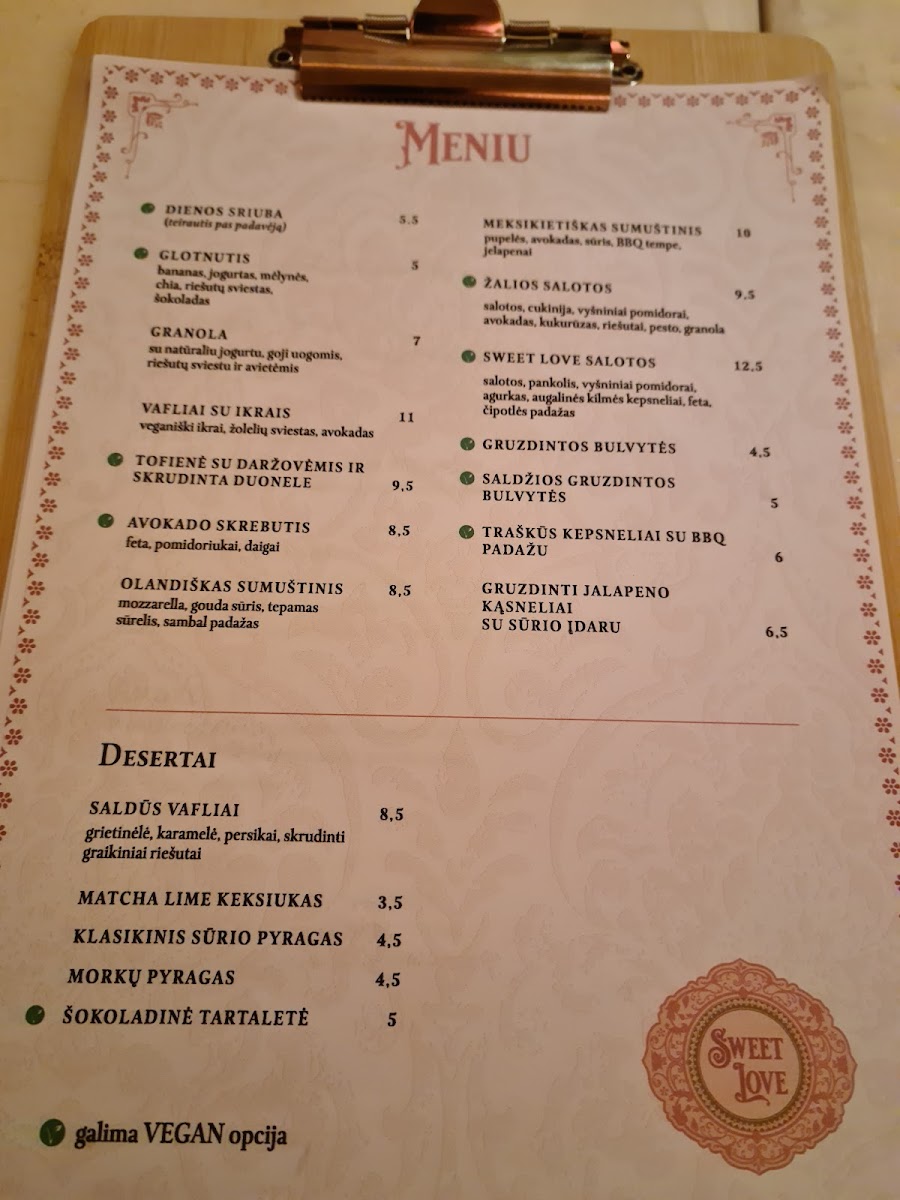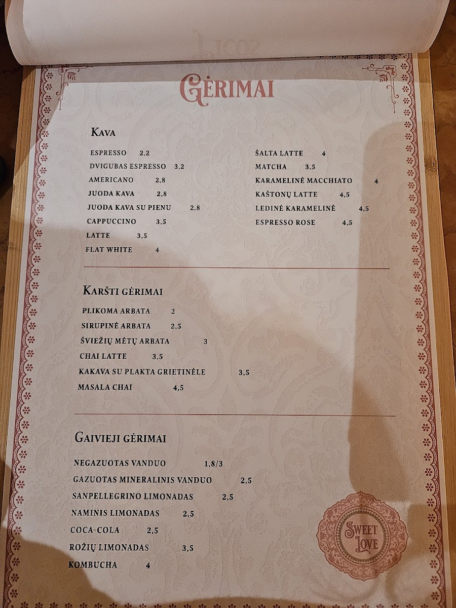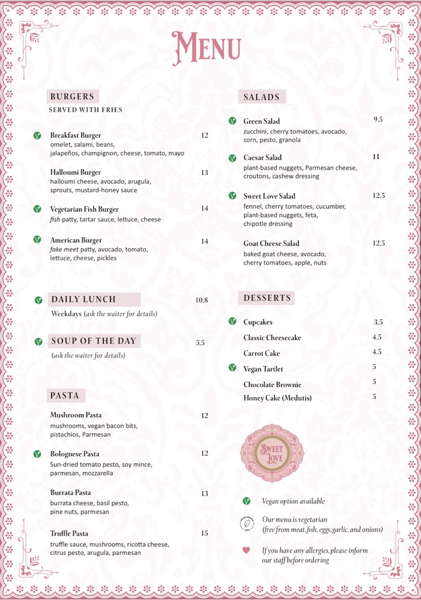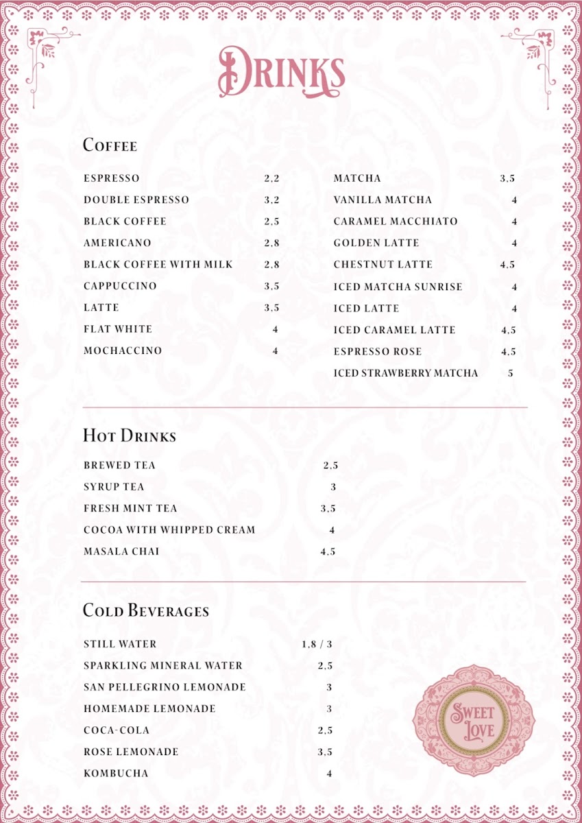Sweet Love Caffe Menu
